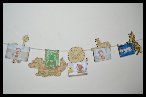 2) Si votre espace est plus limité, vous pouvez découper la ficelle au milieu afin de réaliser deux guirlandes de 6 animaux. Vous pourrez donc accrocher les deux guirlandes une au dessus de l'autre.