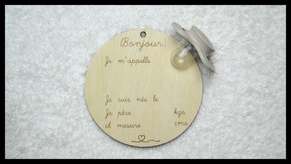 - Pour la carte à remplir: le sexe du bébé (pour l'utilisation des bons accords). Vous pourrez la compléter à la naissance avec un marqueur ou feutre.