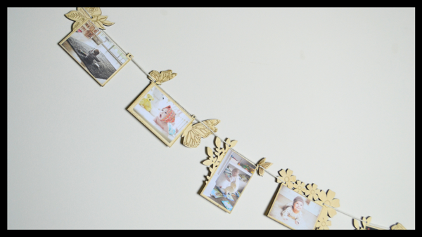 Vendue non montée: elle est composée de 12 éléments, d'une ficelle et de fixations (autocollants) pour les photos.